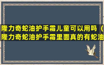 隆力奇蛇油护手霜是一种常见的护手产品,它含有蛇油成分,通常用于滋润和保护干燥、粗糙的手部皮肤。关于儿童是否可以使用,这里有几点需要注意: