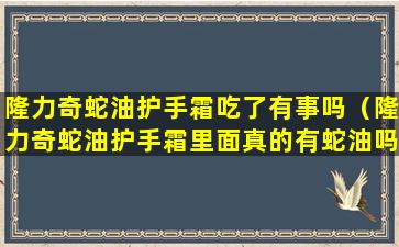 隆力奇蛇油护手霜是一种外用护肤品,主要用于滋润和保护手部皮肤。它含有蛇油成分,可以帮助改善皮肤干燥、粗糙等问题。这种产品是专为外部使用设计的,不应该被食用。