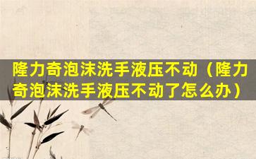 如果您遇到“隆力奇泡沫洗手液压不动”的问题,可能是由于以下几个原因造成的: