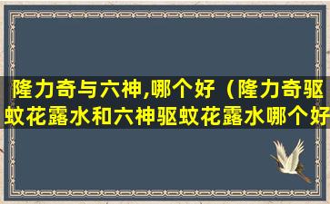 六神驱蚊水和隆力奇驱蚊水都是市面上比较知名的驱蚊产品,它们各有特点,选择哪个更好取决于个人的需求和偏好。以下是两款产品的一些对比信息: