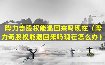 关于隆力奇股权的问题,首先需要明确的是,股权的转让和退回通常需要遵循公司章程和相关法律法规的规定。如果您是隆力奇的股东,并且希望退回股权,您应该首先查阅公司的章程,了解关于股权转让的具体规定。