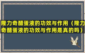 隆力奇醋蛋液是一种结合了醋和鸡蛋的产品,通常被宣传为具有多种健康益处。关于其功效和作用的真实性,需要基于科学研究和证据来进行评估。