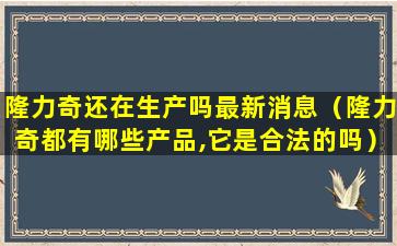 关于“隆力奇还在生产吗”的问题,由于我无法提供实时数据,建议您直接访问隆力奇的官方网站或通过官方渠道获取最新信息。您也可以通过新闻报道、社交媒体或视频平台上的最新视频来了解隆力奇的最新动态。
