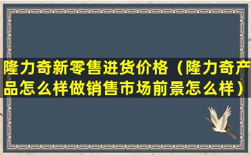 关于“隆力奇新零售进货价格”的具体信息,由于我无法访问最新的数据和商业信息,因此无法提供确切的进货价格。隆力奇是一家知名的健康产品公司,其产品包括保健品、个人护理品等。如果您是隆力奇的经销商或有意成为其经销商,建议直接联系隆力奇公司或访问其官方网站获取最新的进货价格和相关政策。