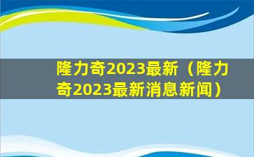截至我知识更新的时间点(2023年初),关于“隆力奇2023最新”的信息可能还没有完全公开或者被广泛报道。隆力奇是一家中国的直销公司,主要从事健康、美容和个人护理产品的销售。如果您想了解隆力奇在2023年的最新动态,建议您直接访问隆力奇的官方网站或者关注其官方社交媒体账号,以获取最准确和最新的信息。