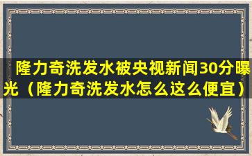 截至我的知识更新日期(2023年),我没有找到关于“隆力奇洗发水被央视新闻30分曝光”的具体信息。央视新闻30分是中国中央电视台的一档新闻节目,通常会报道国内外重要新闻事件。如果有关隆力奇洗发水的报道,可能是关于产品质量、安全问题或其他相关新闻。