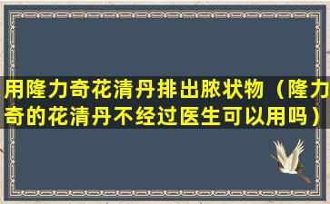 隆力奇花清丹是一种中药制剂,通常用于清热解毒、消炎止痛。任何药物的使用都应该在医生的指导下进行,特别是涉及到排出脓状物这样的情况,可能是身体某个部位感染或炎症的表现,需要及时就医,由专业医生进行诊断和治疗。