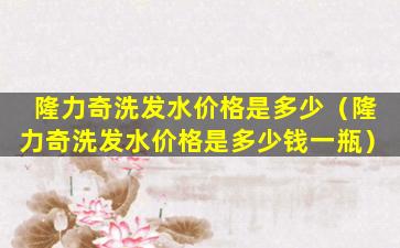 为了获得最准确的价格信息,建议您直接访问隆力奇的官方网站、授权的零售商或在线电商平台(如天猫、京东等)查看最新的价格信息。您也可以在当地的药店或超市查看隆力奇洗发水的实际售价。