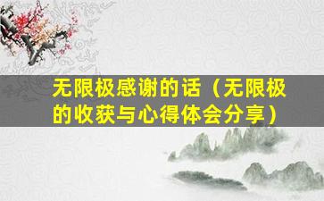 请根据您的实际体验和感受,调整上述话语以表达您对无限极的感谢之情。如果您有具体的感谢对象或事件,可以提供更多细节,以便更准确地表达您的感激之情。