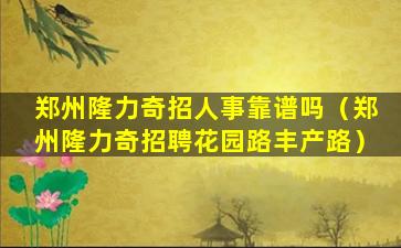 郑州隆力奇招聘花园路丰产路的信息可能指的是位于中国河南省郑州市的一家名为“隆力奇”的公司正在招聘员工,并且该公司的办公地点位于郑州市花园路与丰产路交叉口附近。