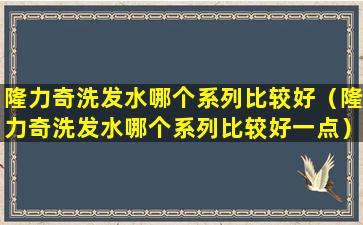 1. 隆力奇蛇油系列:这个系列的洗发水含有蛇油成分,旨在滋养头皮,改善头发干燥和脆弱的问题。适合需要额外滋养和保湿的头发。
