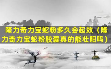 隆力奇力宝蛇粉是一种保健品,其主要成分通常包括蛇粉等,声称具有增强免疫力、改善体质等功效。关于“多久会起效”这个问题,并没有一个统一的标准答案,因为每个人的体质、吸收能力、使用习惯以及对产品的反应都是不同的。