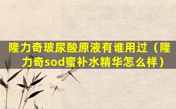 隆力奇(Longrich)是中国的一个知名品牌,其产品线涵盖了个人护理、健康食品等多个领域。隆力奇SOD蜜补水精华是该品牌的一款护肤产品,主要成分包括SOD(超氧化物歧化酶)、透明质酸等,旨在为肌肤提供补水保湿效果。