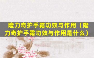 隆力奇护手霜是一种常见的护肤产品,主要用于滋润和保护手部皮肤。以下是隆力奇护手霜的一些可能功效与作用: