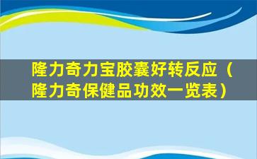 隆力奇力宝胶囊是一种在中国市场上销售的保健品,它声称能够帮助改善人体的某些健康状况。关于“好转反应”这一概念,需要谨慎对待。