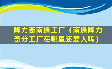 隆力奇南通工厂的具体地址和联系方式可以通过隆力奇官方网站或客服渠道获取。如果您需要了解更多关于隆力奇南通工厂的信息,建议直接访问隆力奇的官方网站或联系其客服部门。