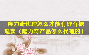 请注意,具体的退款流程和条件可能会根据您所在地的法律和隆力奇的具体政策有所不同。务必确保您的退款请求有理有据,并遵循正确的程序。