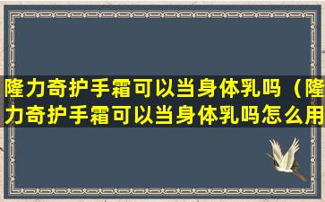 隆力奇护手霜主要是设计用来滋润和保护手部肌肤的,它通常含有较高浓度的保湿成分,如甘油、矿物油等,以帮助修复和保护手部肌肤。虽然护手霜可以用于身体其他部位,如脚部或肘部等干燥区域,但并不推荐将其作为常规的身体乳使用。