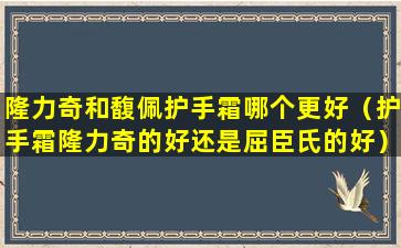 隆力奇(Longrich)和馥佩(Fupe)都是中国的品牌,它们生产的护手霜在市场上有一定的知名度。选择哪个品牌的护手霜更好,主要取决于个人的肤质、需求以及对产品成分的偏好。以下是一些选择护手霜时可以考虑的因素: