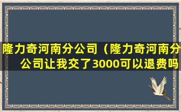 关于您提到的“隆力奇河南分公司”让您交了3000元是否可以退费的问题,这取决于您与该公司之间的具体协议或合同条款。通常情况下,如果存在明确的退费政策,并且您的情况符合退费条件,那么您应该有权要求退费。