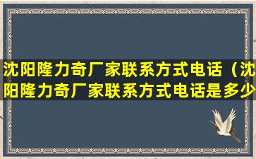 很抱歉,我无法提供具体的电话号码信息。如果您需要联系沈阳隆力奇厂家,建议您可以通过以下几种方式尝试获取联系方式: