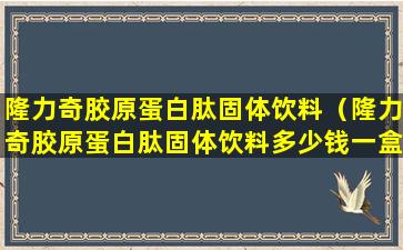 隆力奇胶原蛋白肽固体饮料是一种含有胶原蛋白肽的补充品,通常用于帮助改善皮肤弹性、减少皱纹、增强关节健康等。胶原蛋白是人体中最丰富的蛋白质之一,但随着年龄的增长,人体内胶原蛋白的生成会逐渐减少,因此补充胶原蛋白肽被认为可以帮助维持皮肤和关节的健康。