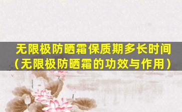 无限极(Infinitus)是一家中国的健康产品公司,其产品线包括护肤品、个人护理品、健康食品等。关于无限极防晒霜的保质期,通常情况下,化妆品和护肤品的保质期会在产品包装上明确标注。