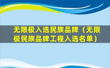 关于“民族品牌工程入选名单”,这可能是指中国政府或相关机构为了推广和支持国内品牌而设立的某个项目或计划。具体到无限极是否入选了某个民族品牌工程的名单,需要查阅最新的官方公告或新闻报道来确认。