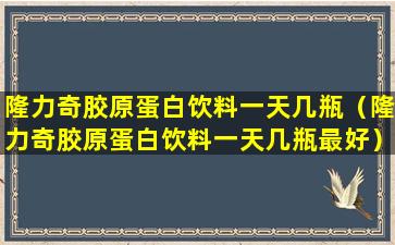 如果您手头有隆力奇胶原蛋白饮料的产品,建议您查看包装上的说明,以获取最准确的饮用建议。通常,这类产品可能会建议每天饮用一瓶,以维持胶原蛋白的补充。但具体的饮用频率和量应该遵循生产商的指导。