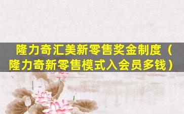 关于“隆力奇新零售模式入会员多钱”的问题,目前没有官方的详细信息公布。隆力奇是一家知名的健康产品公司,其新零售模式可能涉及会员制度,但具体的会员费用、会员权益等信息需要通过官方渠道或官方公告来获取。