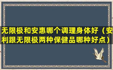 无限极和安惠都是中国的健康产品品牌,它们提供的产品包括保健品、个人护理品等,旨在帮助消费者调理身体和提高生活质量。两个品牌都有一定的市场知名度和消费者基础,但是哪个品牌的产品更适合调理身体,这取决于个人的具体需求、身体状况以及对产品的个人体验。