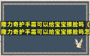 隆力奇护手霜主要是为成人设计的,用于保护和滋润手部皮肤。虽然护手霜通常含有滋润成分,但并不意味着它适合用于婴儿或儿童的面部皮肤。婴儿的皮肤比成人更薄、更敏感,因此需要特别温和和专为婴儿设计的产品。
