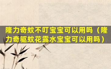 对于宝宝是否可以使用隆力奇蚊不叮或其他驱蚊产品,最重要的是要根据宝宝的年龄和产品的成分来决定,并且在使用前最好咨询专业医生的意见。