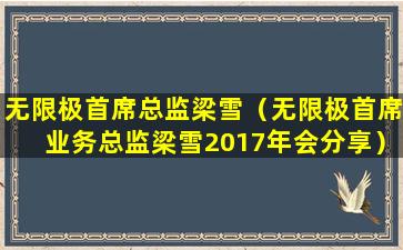 梁雪作为无限极的首席总监,可能意味着她在公司的销售业绩和团队管理方面有着显著的成就。关于梁雪的具体信息,如她的个人背景、成就或者她在无限极的具体职责,需要通过官方渠道或者可靠的新闻来源来获取。