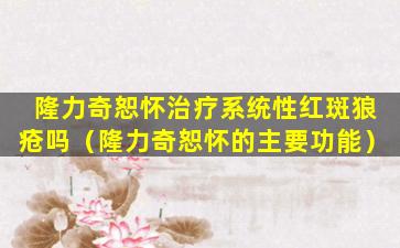 请注意,我不是医生,以上信息仅供参考。如果您或您认识的人正在考虑使用隆力奇恕怀治疗系统性红斑狼疮,请务必咨询医疗专业人员以获取个性化的医疗建议。