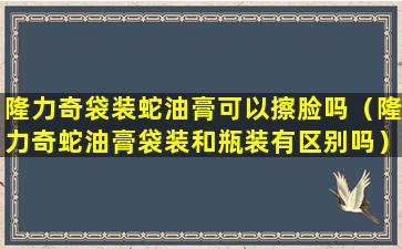 隆力奇蛇油膏是一种常见的中药外用产品,主要用于滋润皮肤、缓解皮肤干燥、粗糙等问题。袋装和瓶装的主要区别通常在于包装形式和使用便利性,而不是产品本身的质量或成分。