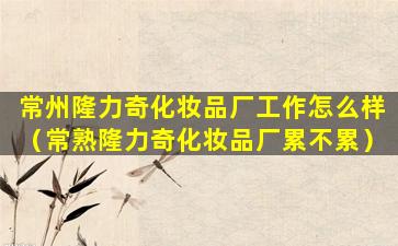 关于“常熟隆力奇化妆品厂”是否累,这个问题的答案可能会因人而异,因为它取决于多种因素,包括工作性质、工作环境、个人体能和耐力等。以下是一些可能影响工作体验的因素: