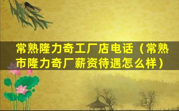 很抱歉,我无法提供具体的电话号码,因为我的知识库中没有包含这样的信息。如果您需要联系常熟隆力奇工厂店,我建议您可以通过以下几种方式尝试获取联系方式: