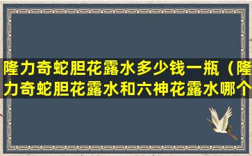 隆力奇蛇胆花露水的价格因地区、销售渠道和促销活动等因素可能有所不同。通常,一瓶隆力奇蛇胆花露水的价格大约在人民币10元到30元之间。为了获得最准确的价格信息,建议您直接访问当地的药店、超市或者在线电商平台查询实时价格。同时,您也可以关注一些促销活动,可能会有更优惠的价格。