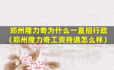 关于“郑州隆力奇为什么一直招行政”的问题,我无法提供具体的公司招聘信息或原因,因为这需要查看该公司的官方招聘公告或联系公司的人力资源部门。通常,公司持续招聘行政人员可能有以下几个原因: