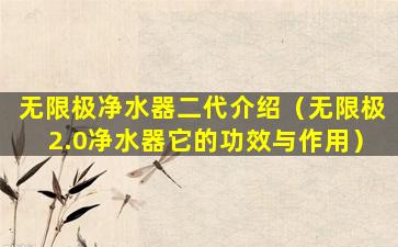 为了获取最准确的信息,建议直接访问无限极官方网站或联系其客服,以获取关于“无限极净水器二代”的最新和最详细的产品介绍。