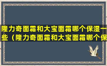 隆力奇(Longrich)和大宝(Dabao)都是中国的知名护肤品牌,它们的面霜产品在市场上都有一定的知名度。关于哪个品牌的面霜保湿效果更好,这通常取决于个人的肤质、使用习惯以及产品的具体成分。