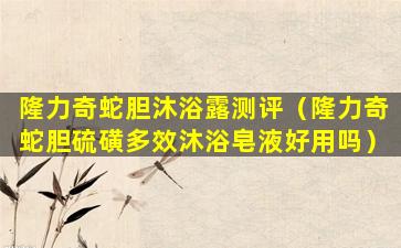 隆力奇蛇胆沐浴露是中国市场上的一款知名沐浴产品,它以蛇胆为主要成分,宣称具有清热解毒、消炎止痒的功效。以下是对隆力奇蛇胆沐浴露的测评: