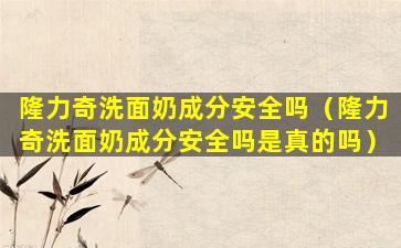 隆力奇(Longrich)是一个中国的品牌,提供多种个人护理和健康产品。关于隆力奇洗面奶的成分安全性,需要具体查看该产品的成分列表。一般来说,洗面奶的成分应该包括清洁剂、保湿剂、防腐剂等,并且应该避免使用对皮肤有刺激性的成分。