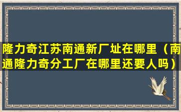 隆力奇是一家中国的直销公司,主要经营保健品、个人护理品等产品。关于“隆力奇江苏南通新厂址”的具体位置,由于信息可能随时间变化,建议直接联系隆力奇公司或访问其官方网站获取最新和最准确的信息。通常,大型企业会在其官方网站上公布其生产基地或工厂的地址。如果您需要联系隆力奇,可以通过其客服渠道进行咨询。