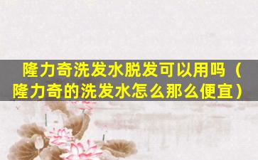 隆力奇(Longrich)是一家中国的多元化企业,涉及健康、美容和个人护理产品。隆力奇的洗发水产品线中可能包含针对不同头发问题的产品,包括防脱发洗发水。
