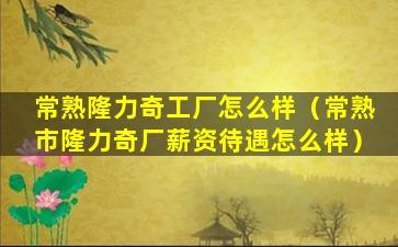 关于“常熟隆力奇工厂怎么样”,这个问题的答案可能会涉及多个方面,包括产品质量、生产规模、企业文化、员工福利、社会责任等。以下是一些可能的评价维度: