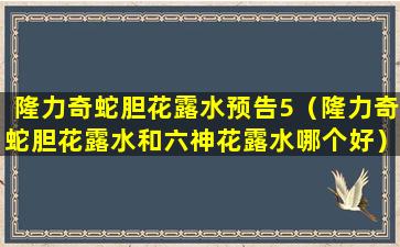 很抱歉,由于我是一个基于文本的AI,我无法提供实时的产品预告或更新信息,包括“隆力奇蛇胆花露水”的最新预告。如果您正在寻找关于该产品的最新信息,我建议您直接访问隆力奇的官方网站或关注其官方社交媒体账号,以获取最准确和最新的产品预告和信息。