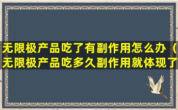如果您在使用无限极产品后出现了副作用,建议您首先停止使用该产品,并尽快咨询医生或专业的健康顾问。同时,您可以联系无限极的客服,报告您的不良反应,并寻求他们的帮助和建议。根据中华人民共和国的相关法律法规,消费者有权要求生产商或销售商对产品造成的损害进行赔偿。如果情况严重,您还可以向相关监管部门投诉或寻求法律援助。请确保您的健康和权益得到妥善保护。