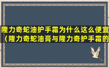 隆力奇蛇油膏护手霜之所以价格便宜,可能有以下几个原因: